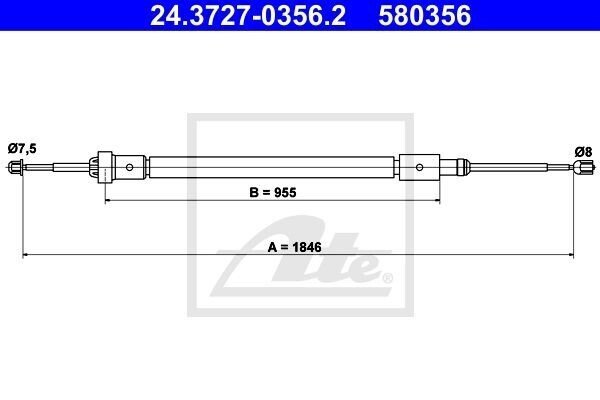 Трос стояночного гальма задн Лів/Прав (1846мм/955мм) CITROEN C4 CACTUS 1.2/1.6D 09.14-